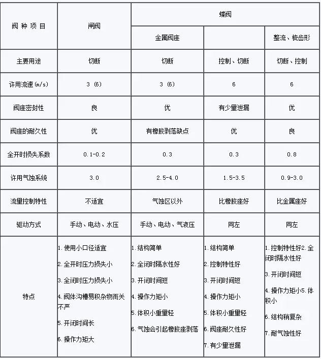 接下來,通過對比,介紹水利工程給水系統常見閥門的選型比較。